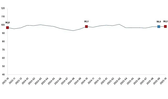 Ekonomik güven endeksi, güven endeksleri ve değişim oranları, Ekim 2025